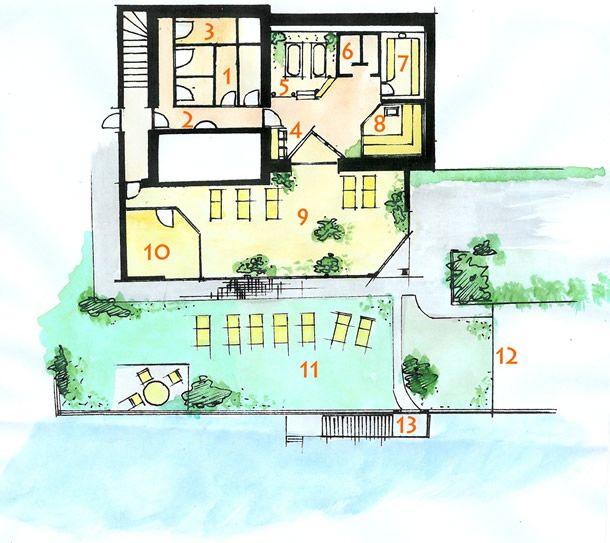 - Der Panoramaruheraum, sowie die Liegewiese sind ganztägig zugänglich